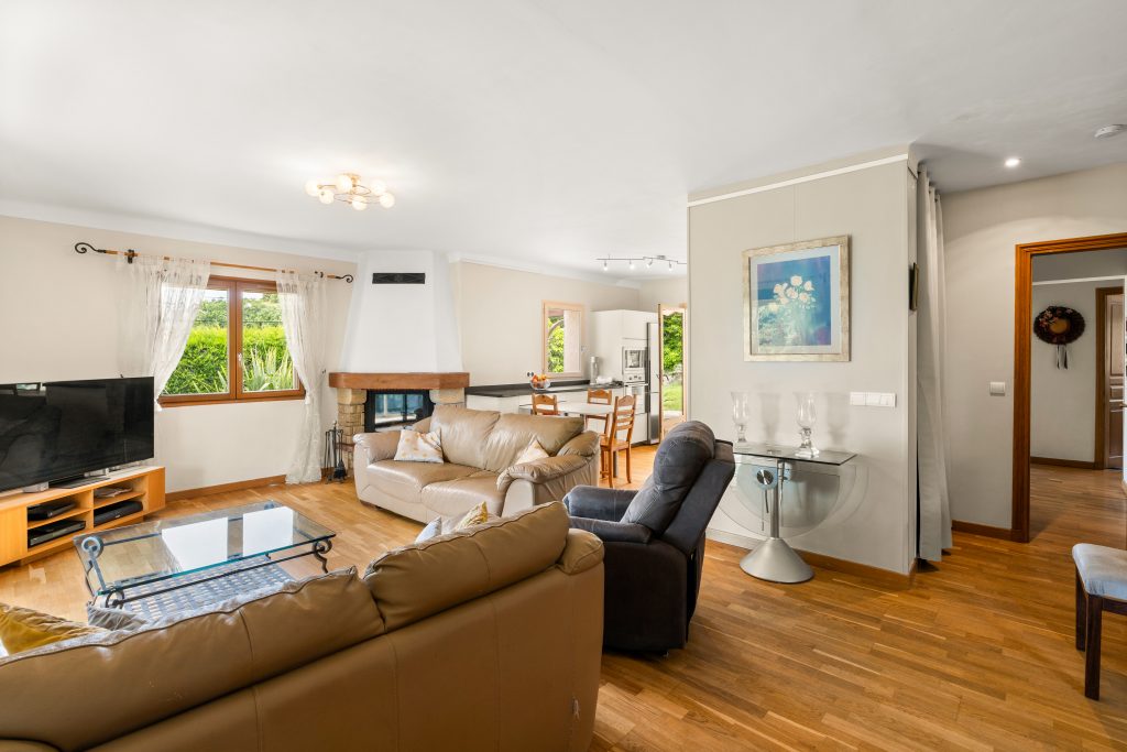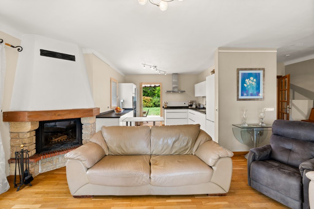 La maison principale d’une superficie de 135m2, s’ouvre sur un spacieux séjour de 30 m² baigné de lumière avec une