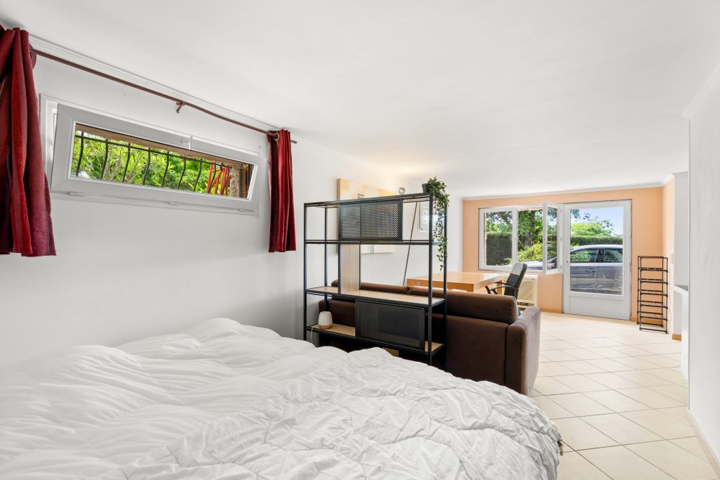 En rez-de-jardin, un studio indépendant de 31 m² avec sa propre cuisine et salle d’eau constitue un véritable atout : idéal