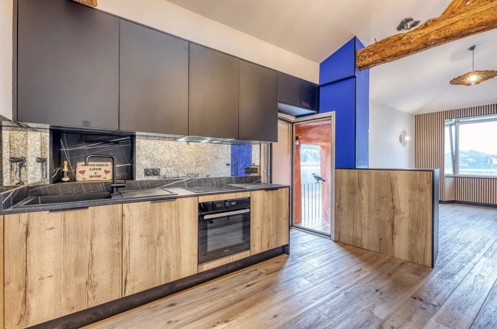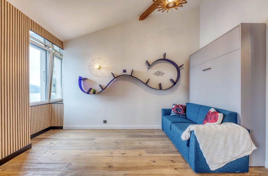 Cet appartement entièrement rénové offre une vue panoramique sur la mer et le port.